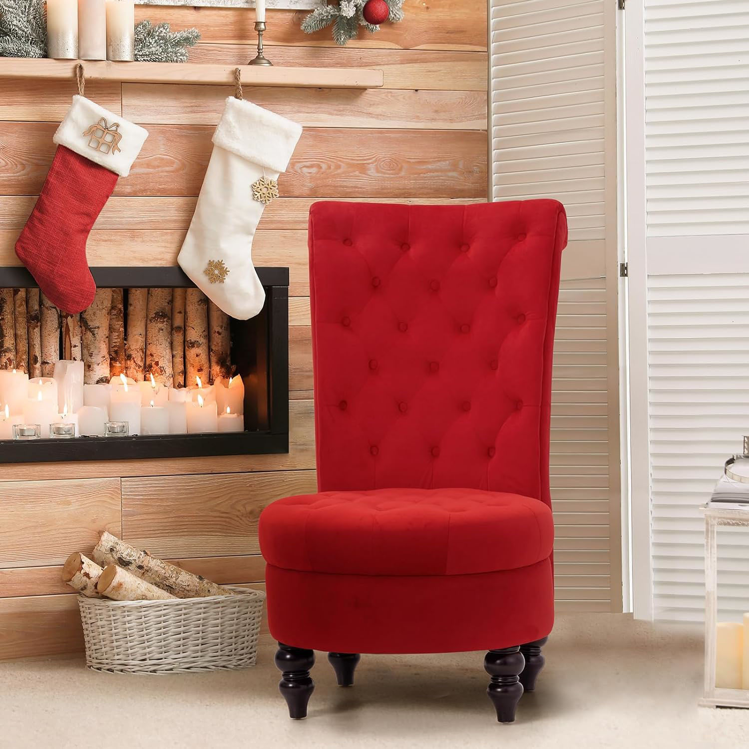 This versatile piece of furniture gives you the comfort of an ottoman but with the high back of a normal chair. You can use this as a chair or footrest and it will fit great with any living room. Acting as an accent chair, it won't take up much space and it will add a touch of style to any room. The soft velvet upholstery includes a button-tufted backrest and sturdy wood legs for added comfort.