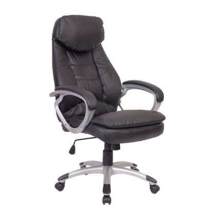 Comfortable executive chair upholstered in bonded black leather and PVC Padded seat and back for all-day comfort and support Pneumatic seat-height adjustment; 360-degree swivel; smooth-rolling casters