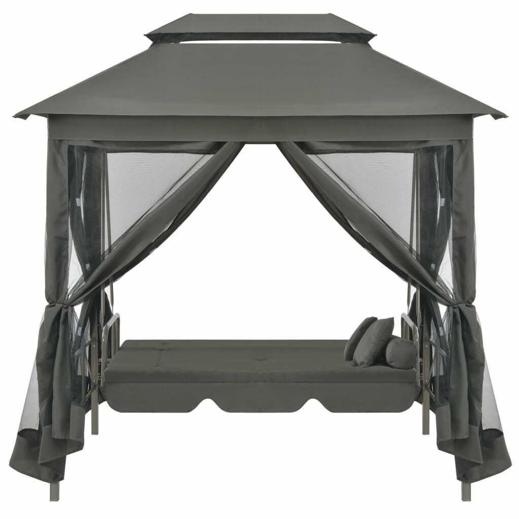 Outdoor Convertible Swing Bench with Canopy Anthracite 86.6"x63"x94.5" Steel 45073 This swing chair with large canopy will become the focal point of your garden or other outdoor living space.