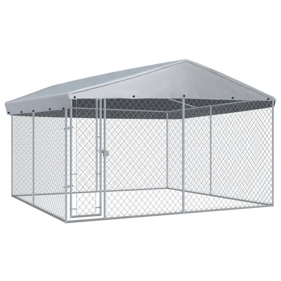 Thanks to the sturdy and heavy-duty galvanized steel construction, this dog kennel is durable and built to last. The included top canopy, made of 100% polyethylene, is fire-resistant and UV protected, providing protection from sun, rain, snow and other weather conditions.