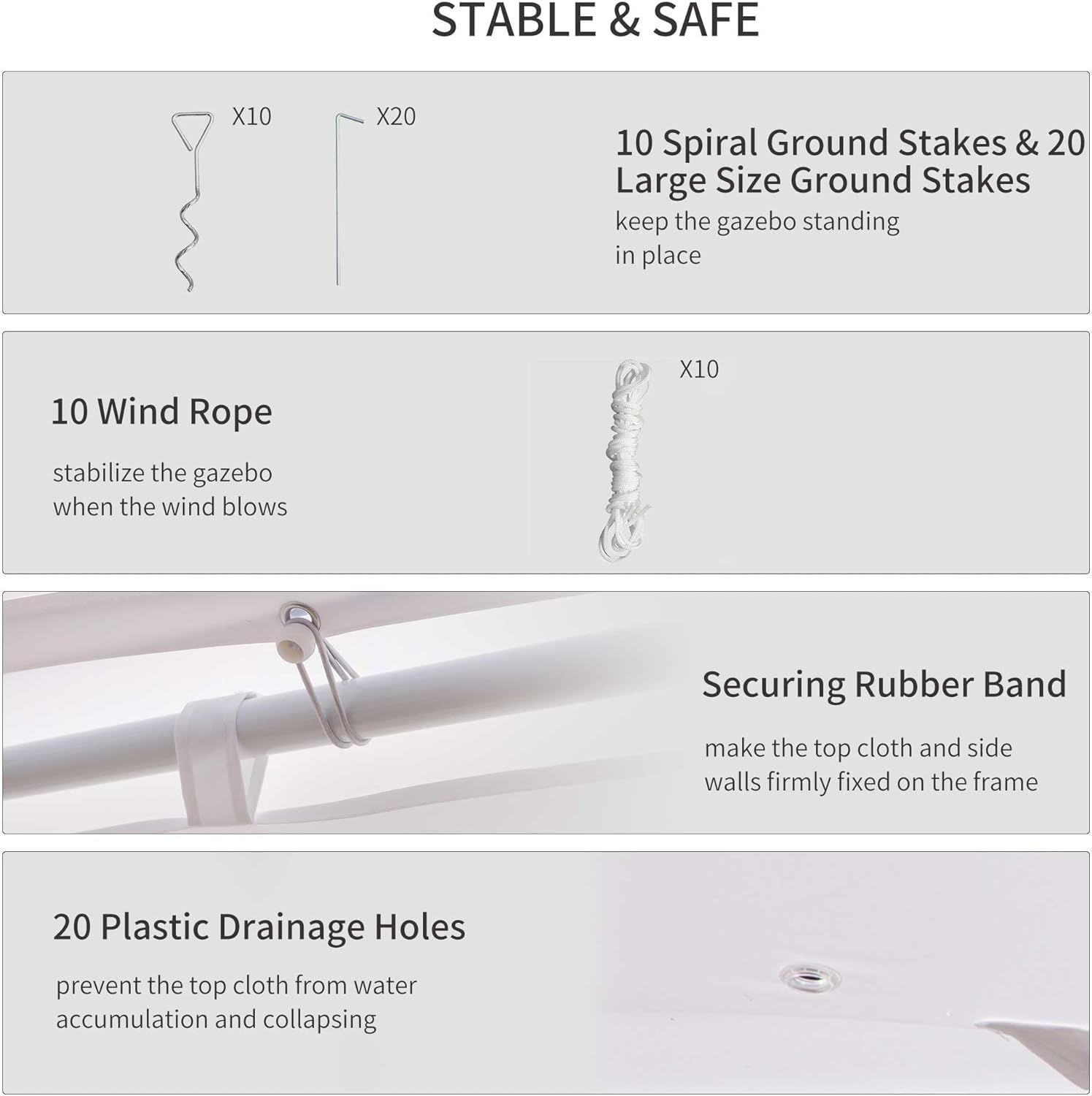 - Easily Customizable: The two solid pull-back doors and eight window walls attach with hook and loop fasteners for quick assembly. Customize the look and feel of your gazebo canopy tent by adding or removing walls as needed.