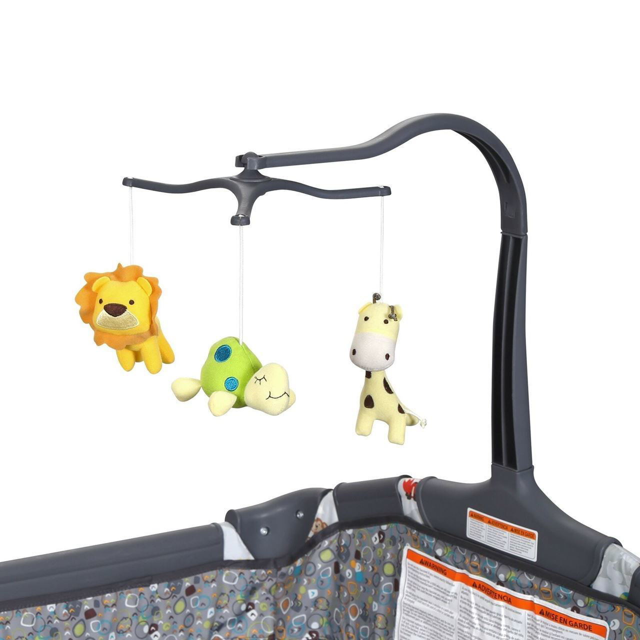 This playard is featured with a removable full bassinet, a mobile with three adorable plush toys and a diaper stacker for baby's essentials. Ideal for keeping your child entertained and happily occupied, you can have peace of mind as you tackle household chores.